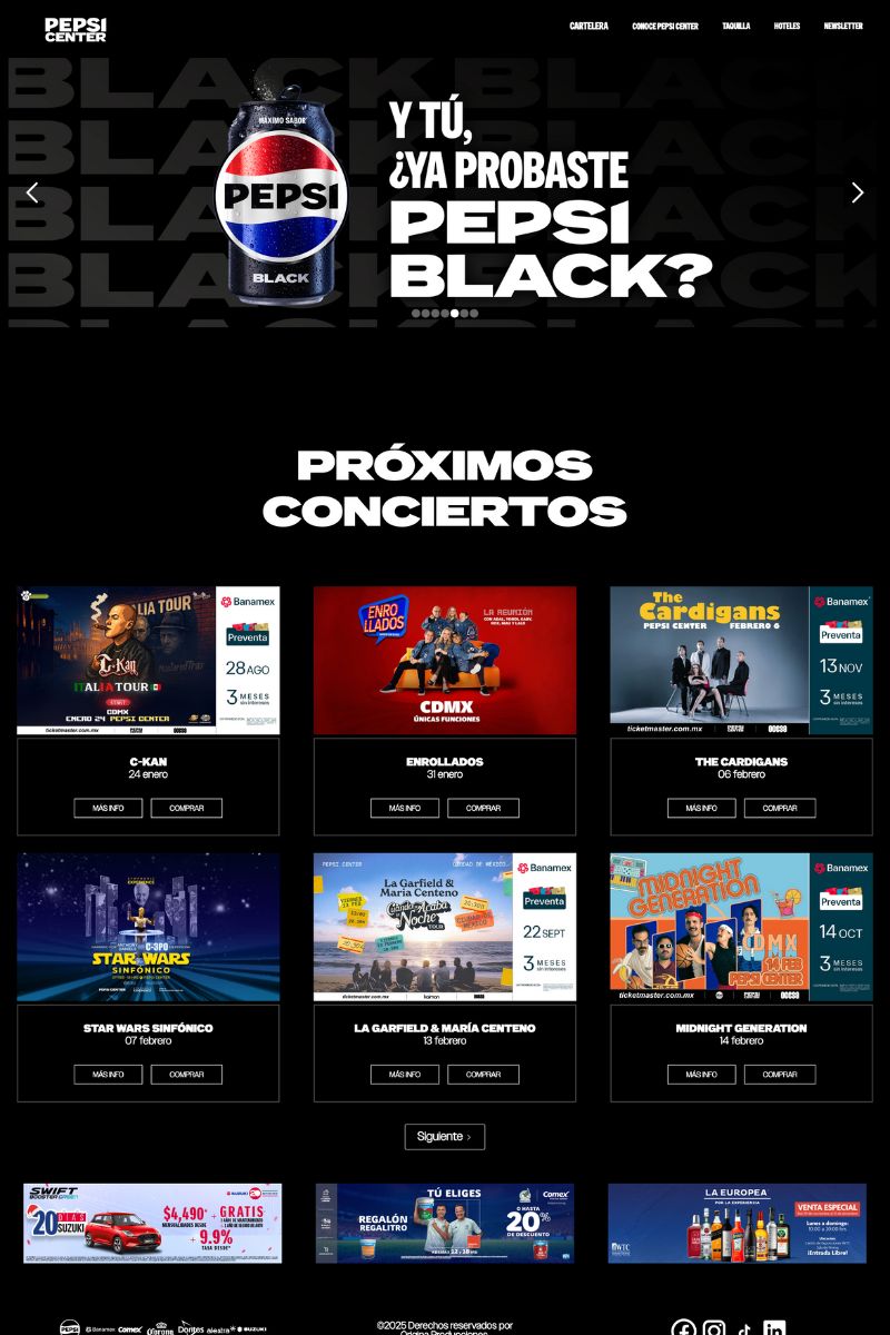 A dynamic website created to showcase concerts and events at the Pepsi Center, focused on improving usability, clarity, and event discovery.