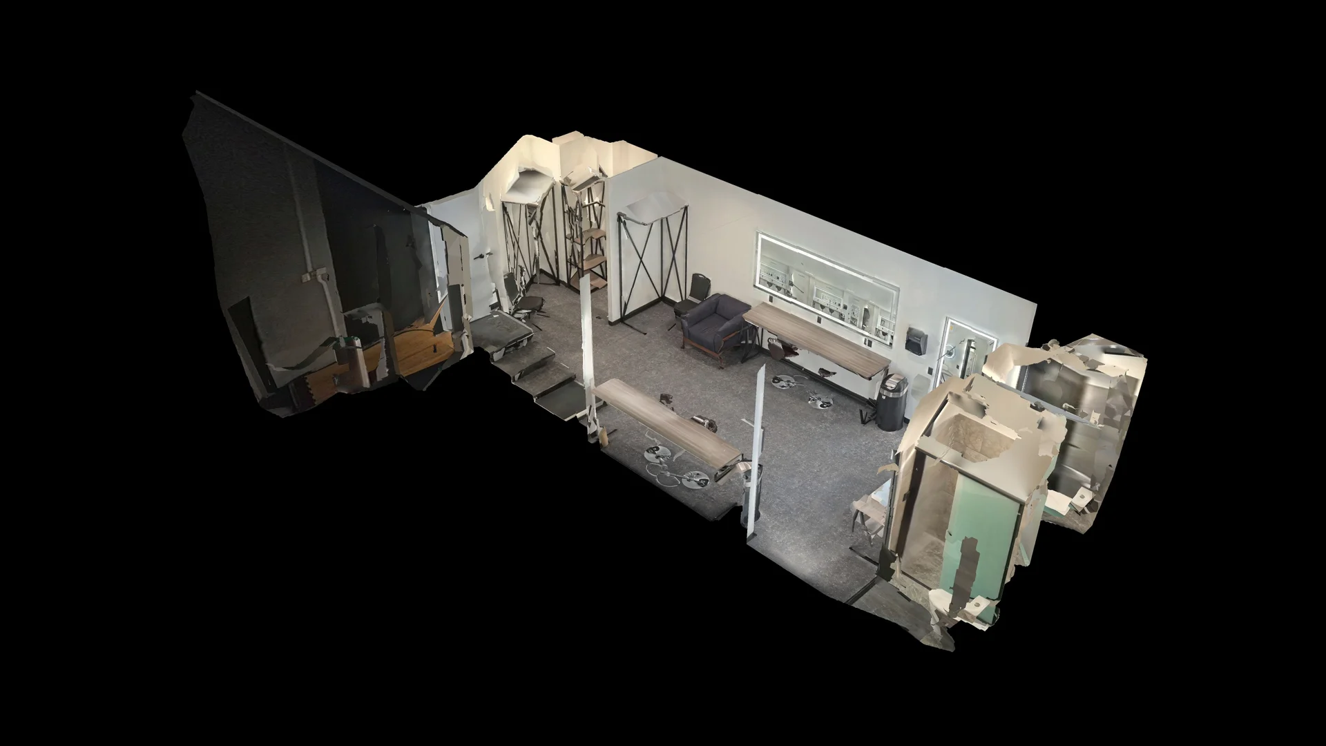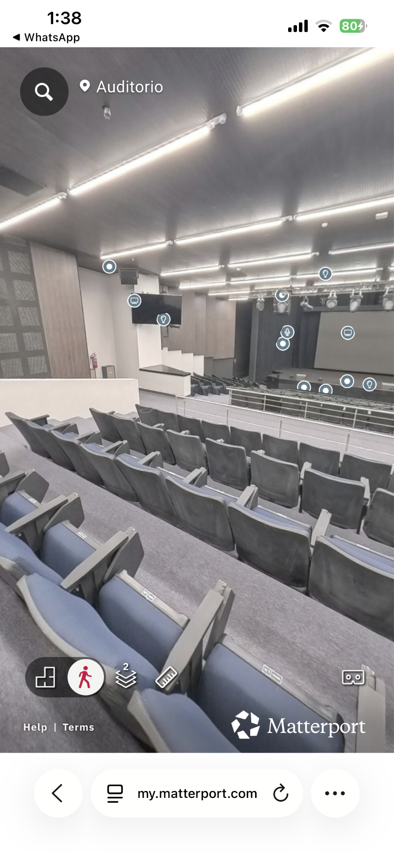 A high-quality 3D capture and virtual tour designed to showcase a concert hall and dressing rooms in an immersive, interactive format.
